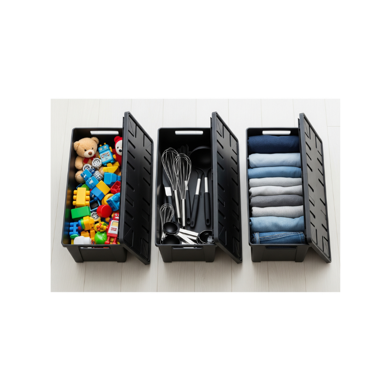 Ideal para guardar brinquedos, utensílios domésticos, roupas e outros itens, mantendo tudo limpo, protegido e bem organizado.